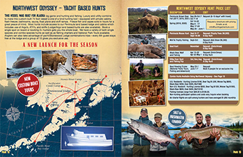 This vessel was built for Alaska big game and hunting and fishing. Luxury and utility combine to make this custom built 74 foot vessel a one of a kind hunting tool—equipped with private cabins, flash freezer, bathrooms, sauna, float plane and skiff ramps. Freeze fish and capes solid in hours for a great peace of mind. Most hunts include access to our Peninsula land based lodge and cabins which includes use of Argo’s, ATV’s, and skiffs (Lodge/Argo land based hunts are also available). Book a single spot on board or book 3+ hunters for the whole boat. We have a variety of both single species and combo species hunts as well as fishing charters and National Park Tours available. Anglers can also take advantage of yacht/Stonewood Lodge combinations trips—every 6th guest stays free at the lodge and a group of 10 gives you exclusive use.